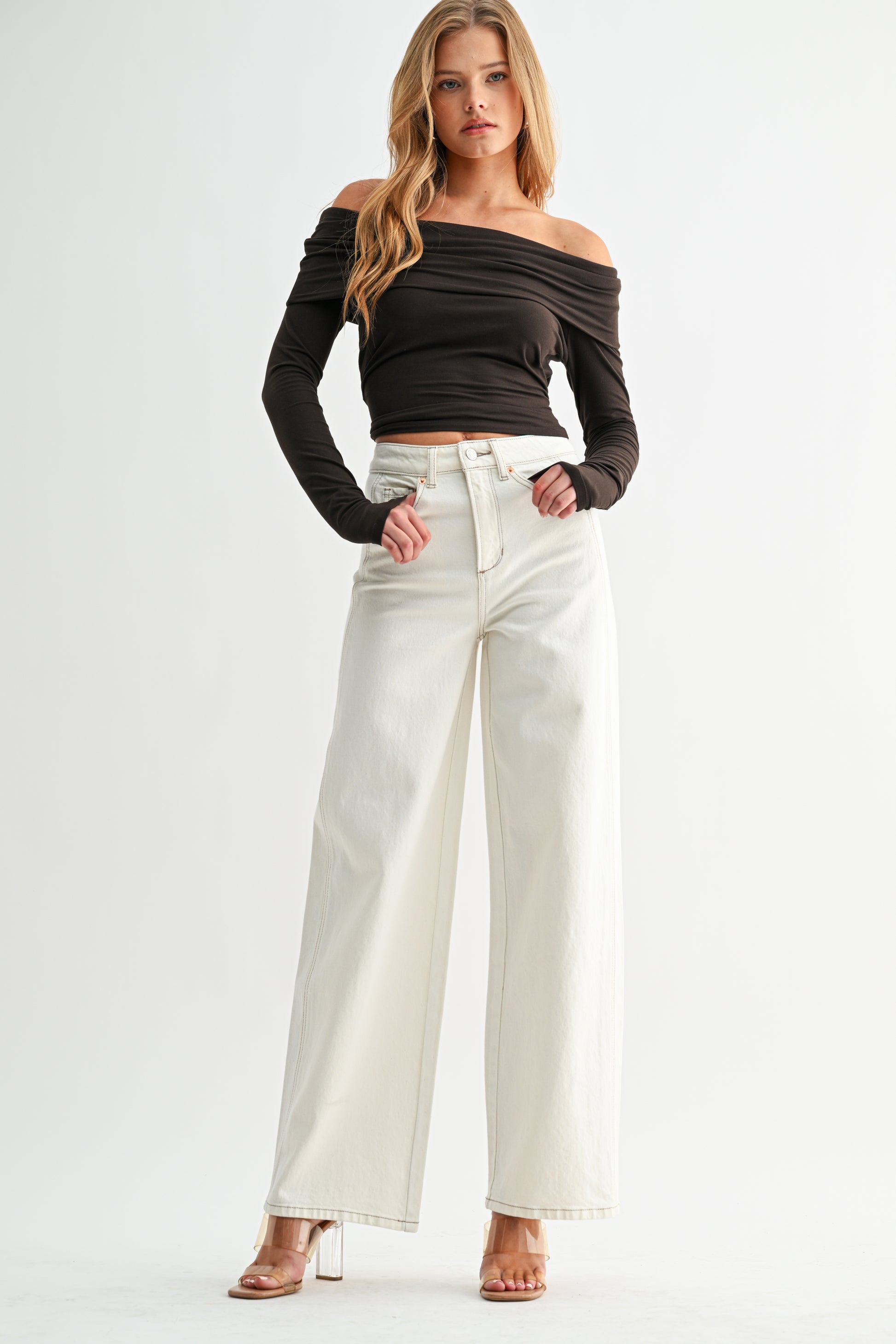 These balloon fit pant's feature a ecru base color with an authentic contrast stitching. The high-rise balloon shape flatters and provides a laid-back, modern silhouette that is our update to the barrel leg. This style also has the side panel detailing to give comfort and structure to the leg shape.