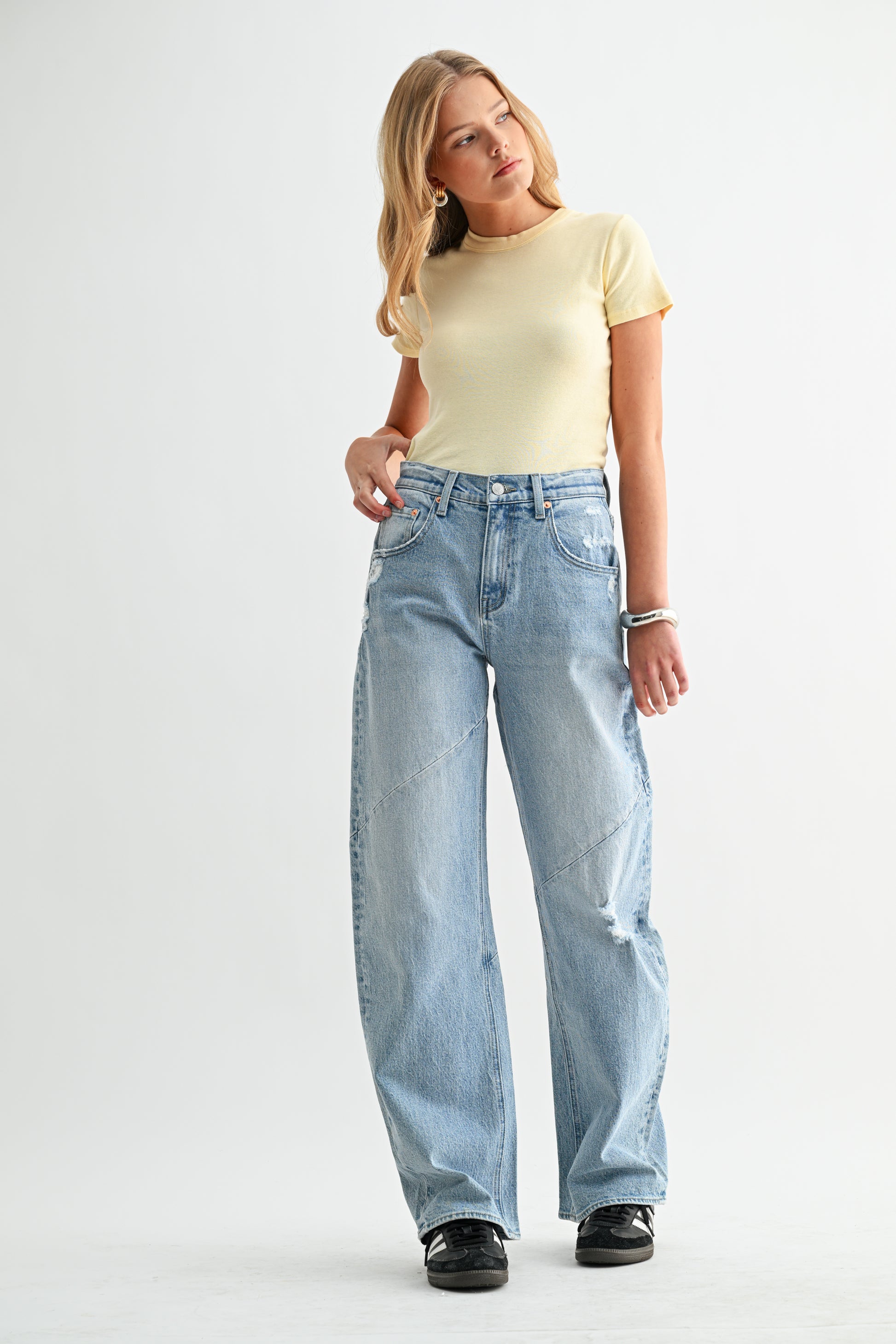 Crafted from our signature comfort stretch denim, the Arc holds its bold, curved shape while providing a relaxed, effortless feel. Whether paired with a slim-fitting top or a cropped denim shirt, these pants serve as the definitive anchor for a forward-thinking wardrobe.
